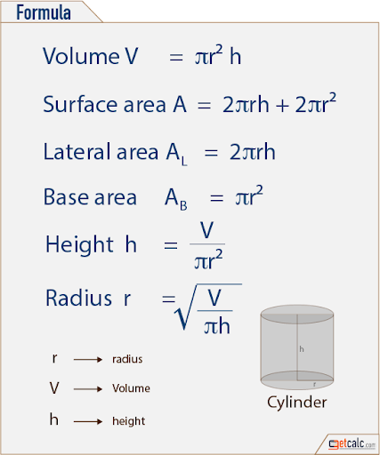 Cylinder Volume Calculator from getcalc.com How to calculate surface area of different 3d bodies. A =2πrh 500 = 2 × 3.14 × r × 10 500 = 62.8r r = 500/62.8 = 7.96 therefore the radius of the cylinder is 7.96 cm. In the figure above, adjust the height and diameter of the cylinder and note how the surface area is calculated. To calculate the surface area of a cylinder, you need to find the base area (b) and curved surface area (csa). .area of a cylinder calculator can calculate the surface area of any cylinder if you have the radius and the height of the cylinder.a cylinder is a 3 dimensional geometric shape. You can measure the radius with a ruler if you are looking for the surface area of an actual cylinder. Of course, the two circles will have. Cylinder calculator will give the surface area and volume of a cylinder.